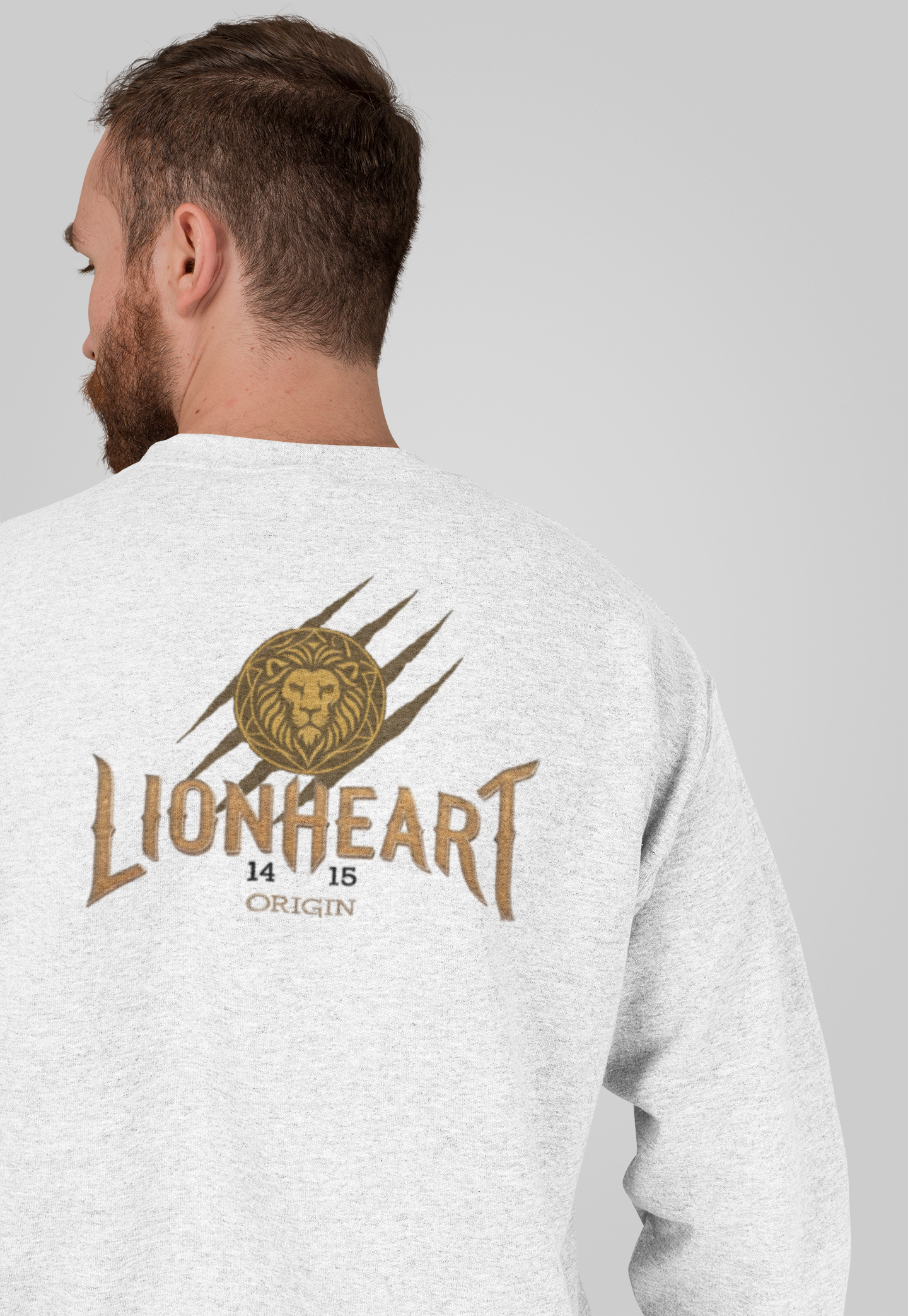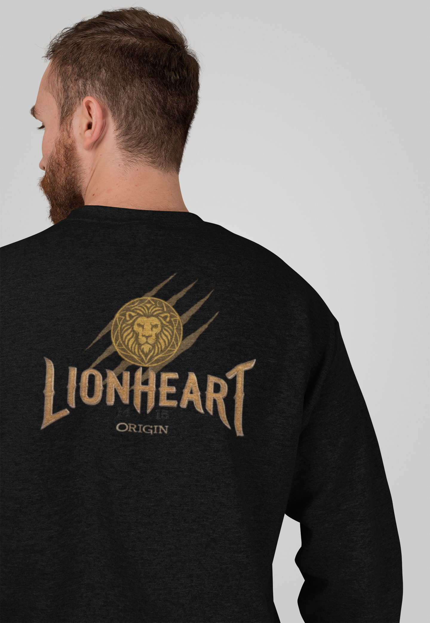 LIONHEART-ORIGIN 1415 Crewneck Sweatshirt with Front Lionheart Shield and Back Lion Head Shield Print